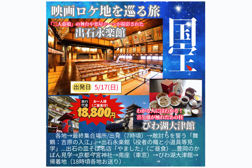 【5/17】映画のロケ地を巡る旅「国宝」出石・京都・大津